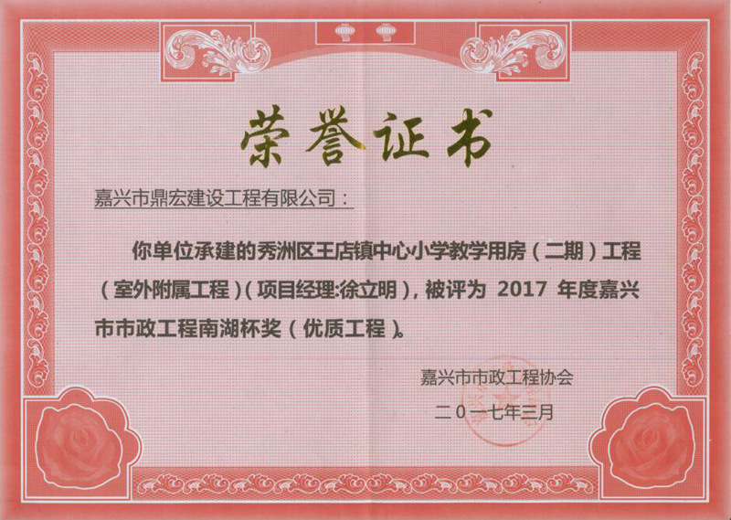 • 2017年嘉興市市政工程-南湖杯獎(jiǎng)