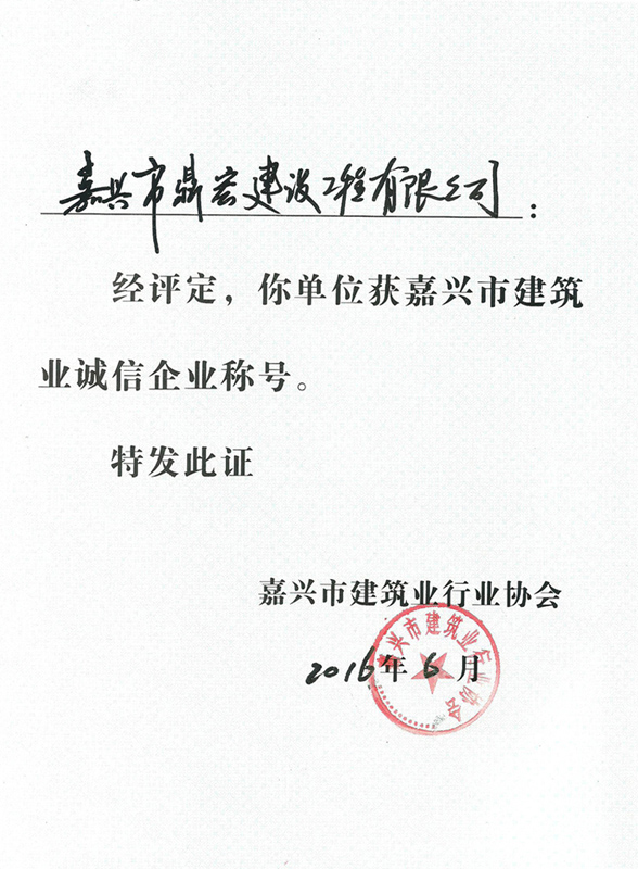 嘉興市建筑業(yè)誠(chéng)信企業(yè)