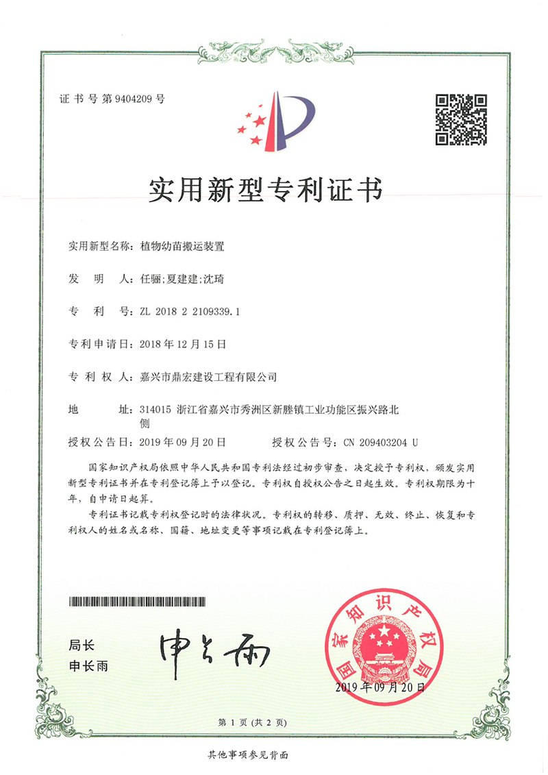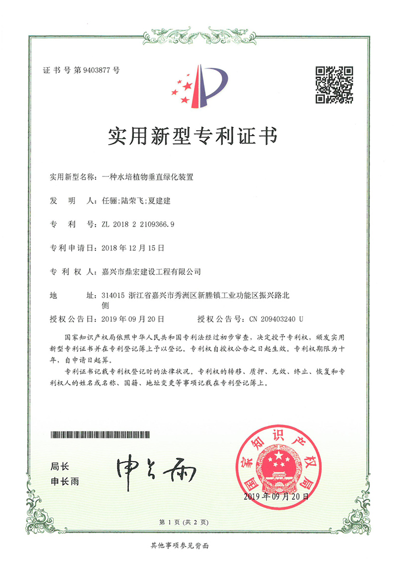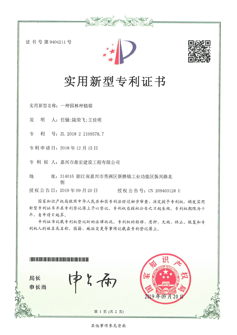 您的位置:主頁 > 企業(yè)榮譽 > 實用新型專利證書-園林